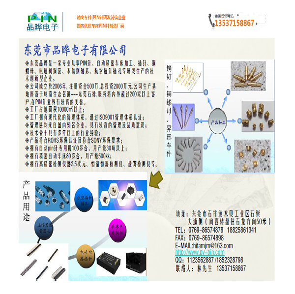 阿里巴巴|慧聰商城|網(wǎng)站地圖您已進入東莞市品曄電子有限公司官網(wǎng),我們主要用車床加工各類車件,精密車件,五金沖壓件,銅件,電子插針連接器PIN針…???
